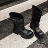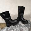 Autumn and winter women's Martin boots leather large size leather boots sleeve thigh circumference high boots new thick-soled cowhide women's boots