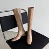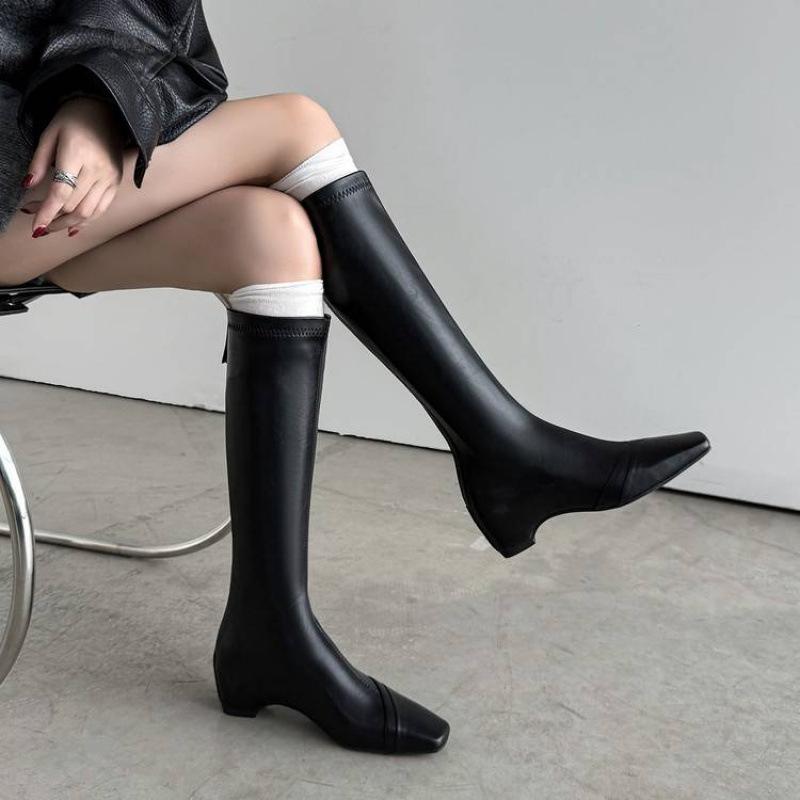 Autumn and winter leather Martin boots solid color versatile low heel square heel large size women's boots cowhide square head new high boots women