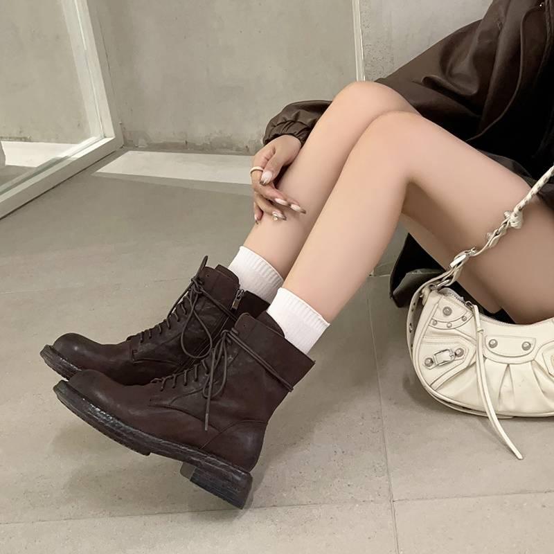 Autumn and winter women's leather boots side zipper large size women's boots leather versatile medium heel Martin boots new comfortable low boots