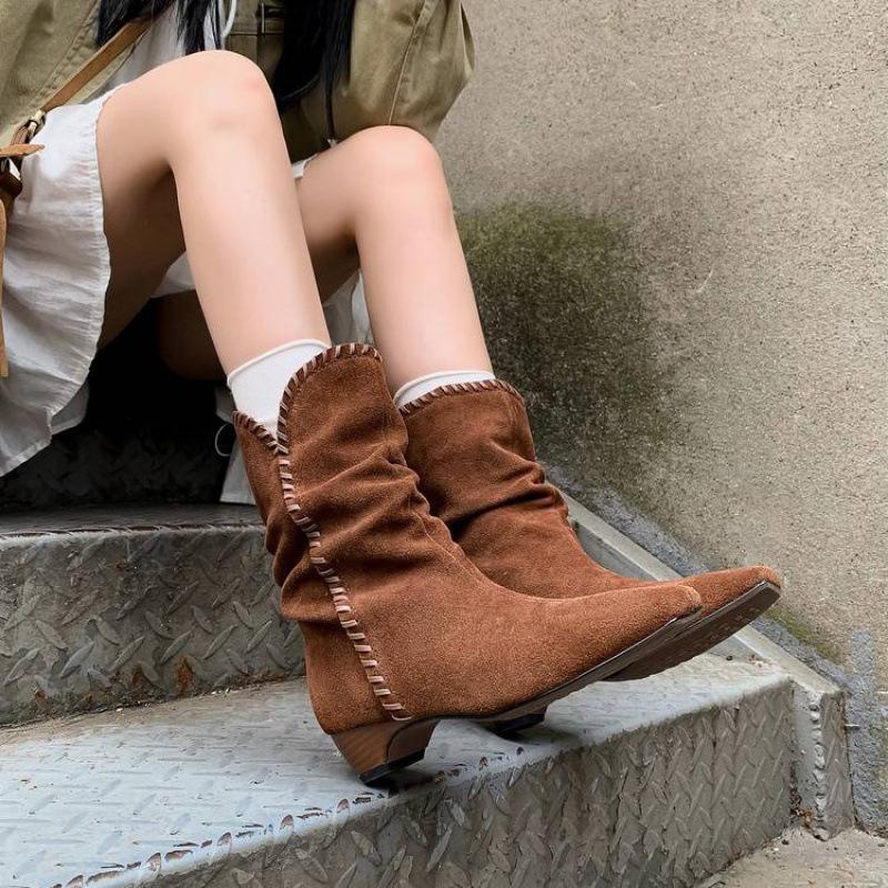 Autumn and winter women's Martin boots leather large size women's boots medium heel non-slip rubber sole sleeve new versatile medium boots