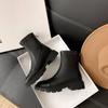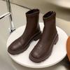 Autumn and Winter Women's Round Head Leather Martin Boots Solid Color Medium Heel Large Size Women's Boots Square Heel Comfortable Back Zipper Medium