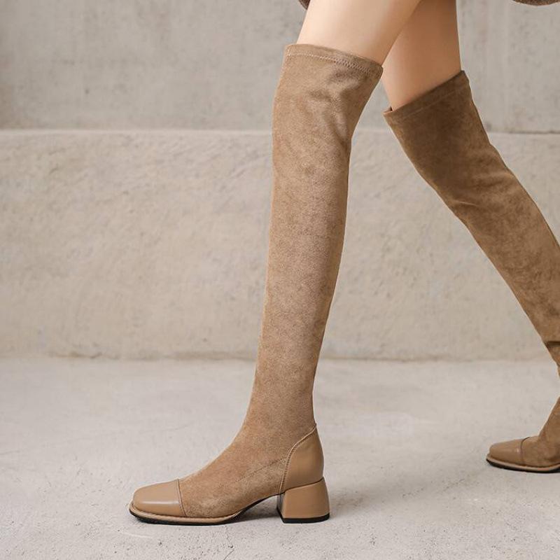 Korean version of the new suede over-knee boots solid color round head square heel sleeve leather boots autumn and winter comfortable rubber sole Mar