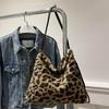 Simple large-capacity bag 2025 small fresh and fashionable leopard print plush tote bag atmospheric fluff shoulder bag women's bag