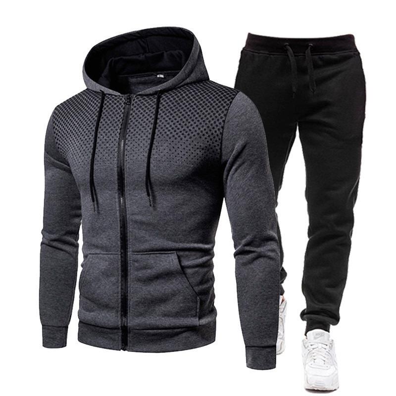 New Polka Dot Print Solid Color Zipper Set Autumn and Winter Plus Velvet Men's Sports Hoodie Sweatshirt and Sweatpants