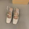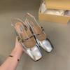 French red bag head sandals women's shoes 2025 new summer square head medium high heel silver Mary Jane single shoes