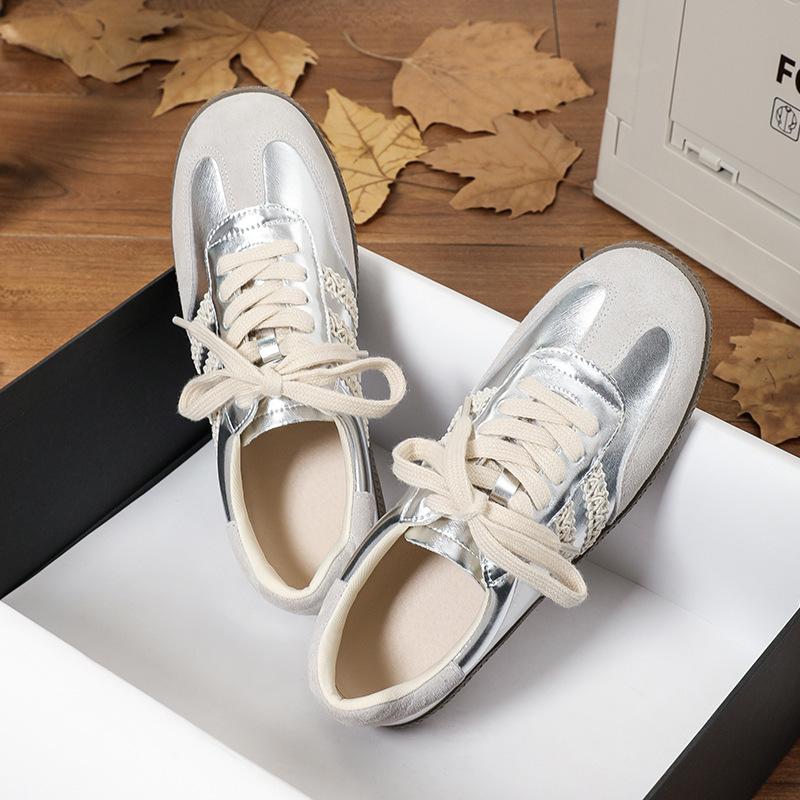 Spot little white shoes women's retro lace 2025 new spring leisure sports color matching soft sole silver German training shoes women