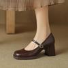 New women's round head single shoes casual solid color platform high heel large size shoes thick heel buckle four seasons wear small leather shoes