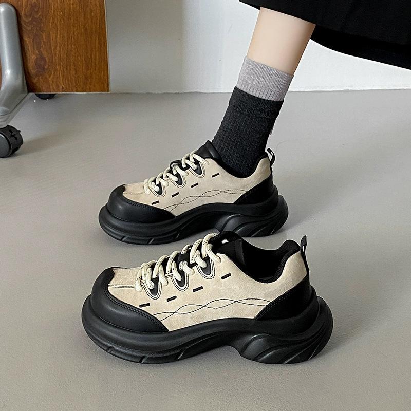 Leather retro big head platform casual shoes women's 2025 new versatile, light and comfortable dad sports shoes