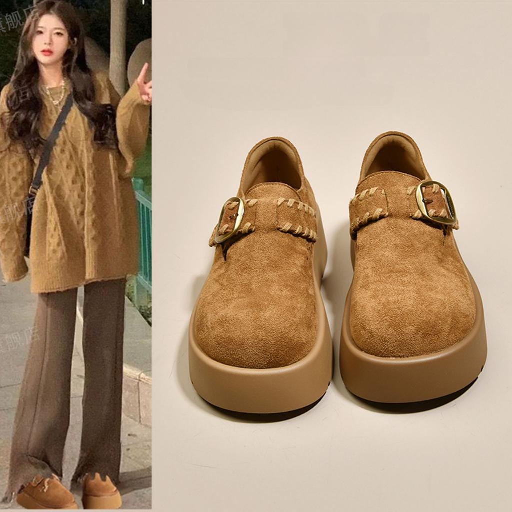 Thick-soled heightening all-inclusive Boken shoes women's 2025 new autumn small man one-pedal loafers embroidered single shoes
