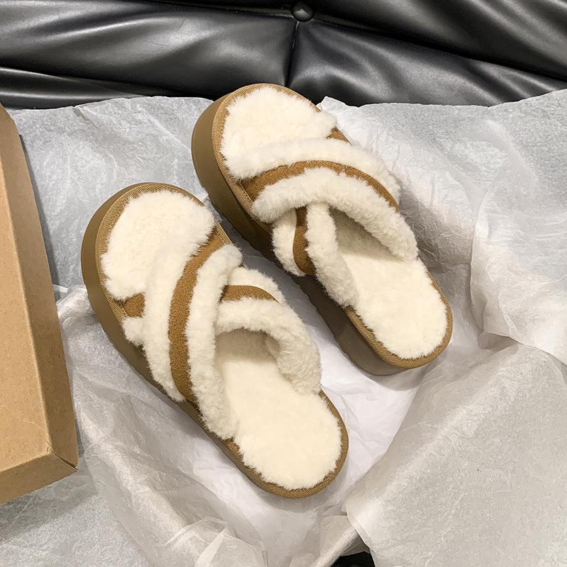 Thick-soled fluffy slippers women's wear 2025 new autumn and winter fashion plush shoes go out Internet celebrity casual cotton mop