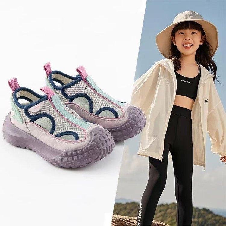 Girls' sports sandals 2025 summer new children's bag head mesh shoes breathable hollow little girl outdoor hiking shoes
