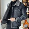 Denim Jacket Plus Velvet Thickening Slim Fit Lamb Velvet Winter Korean Style Jacket Handsome Cotton Jacket