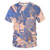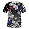Pánská trička s kulatým výstřihem a květinovým vzorem s 3D potiskem - Ležérní trička s krátkým rukávem - Měkký středně pružný polyesterový materiál - Letní oblečení volného střihu