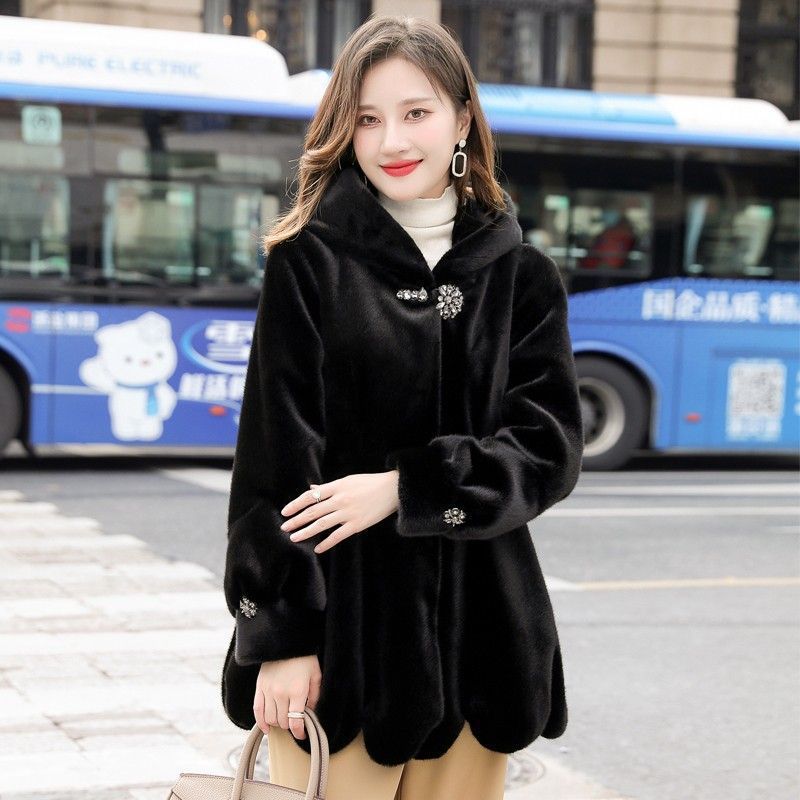 New women's autumn and winter coat imitation mink velvet imitation leather winter hooded large size top