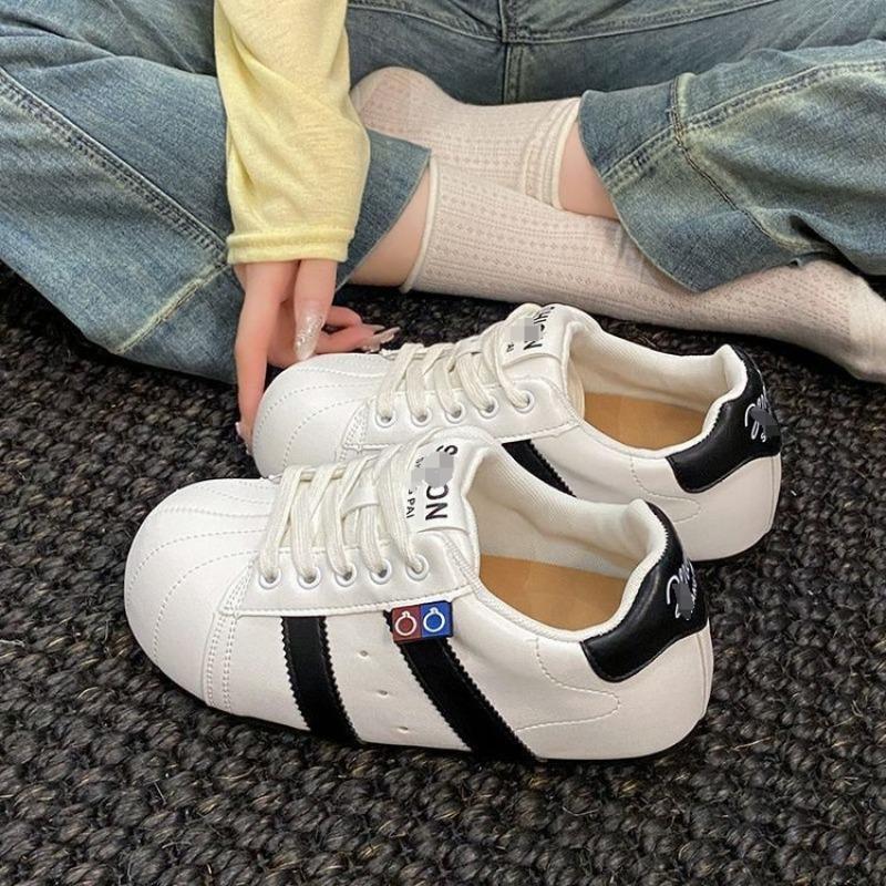 Wind shell head leather board shoes women's new autumn big head bread shoes versatile flat casual shoes