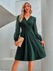 Women's 2024 Autumn/Winter New Casual V-Neck Solid Color Jacquard Dress