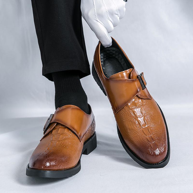 Large size business dress crocodile pattern leather shoes men's foreign trade British buckle one pedal loafers groom wedding shoes