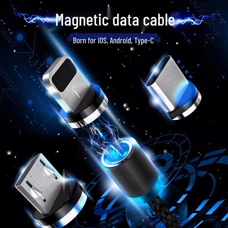 Nylon Magnetic 3-in-1 Charging Cable for Android, Apple, and Type-C Devices