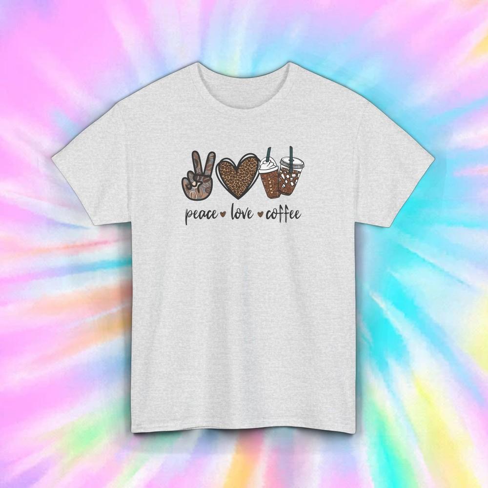 Peace Love Coffee T-Shirt | Coffee Lover Graphic Tee S-5XL