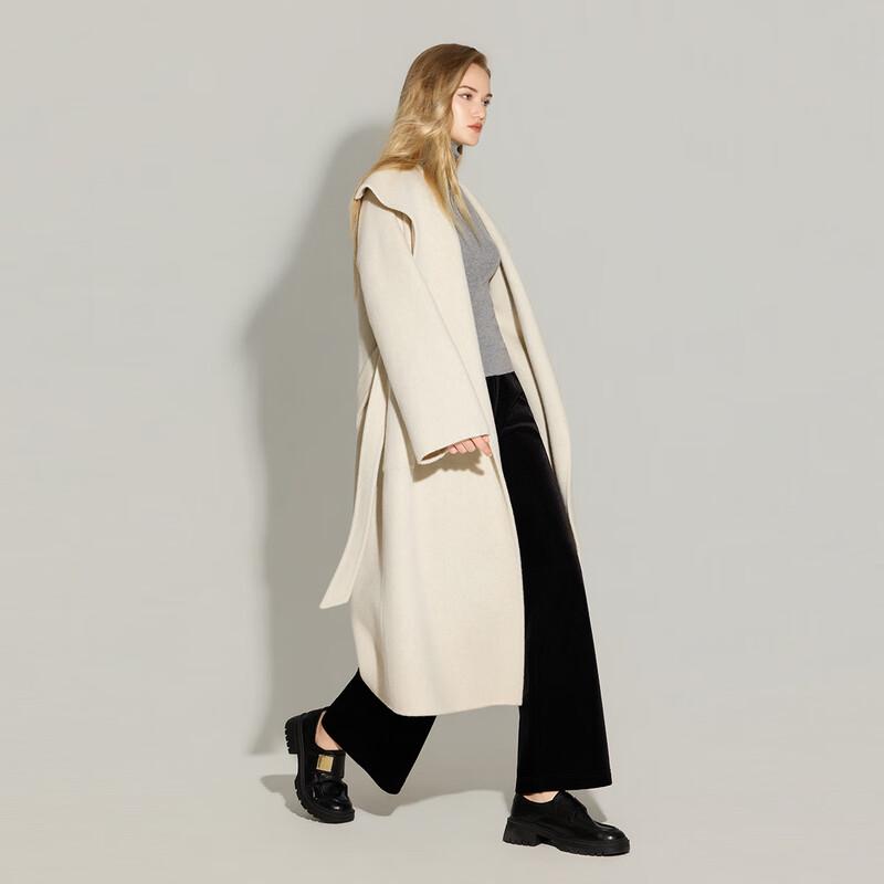 Women's Long Lapel Robe Style Double-faced Wool Coat