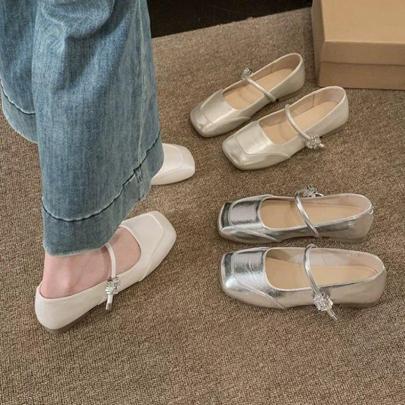 Square head shallow mouth single shoes women's autumn fashion new versatile soft sole retro Doudou Mary Jane shoes small leather shoes