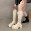 Muffin thick-soled small man thin long tube knight boots women's 2025 autumn and winter new black heightening medium tube long boots