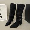 Korean version suede pleated piled boots long boots women's autumn and winter new suede two wear thin heel back zipper high heel women's boots