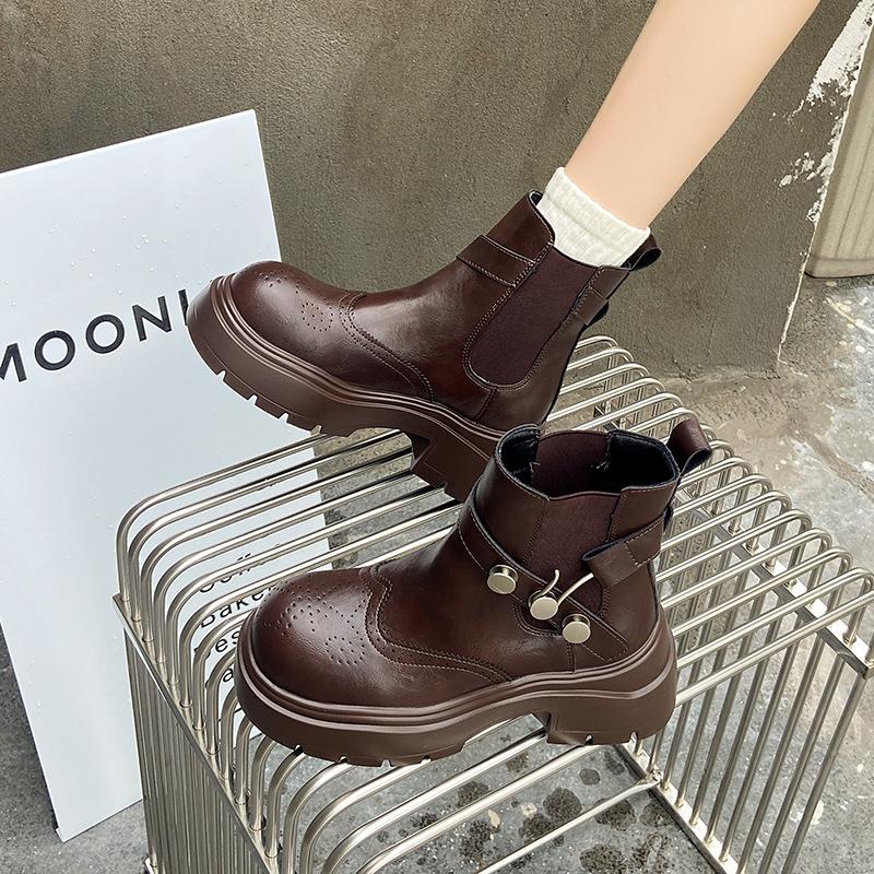 European 2025 autumn and winter new comfortable Chelsea women's heightened British style thick-soled big-headed Martin boots