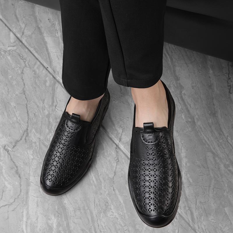 Fashion Quality Slip on Hollow Out Loafers Shoe Soft Casual Genuine Leather Low Shoes Summer Men Business Party Breathable Shoes