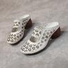 Baotou half slippers women's outer wear summer new leather middle heel soft sole hollow mother sandals women