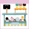 Wooden Cream Ice Stand Toy With Cash Register And Fruit Accessories Playtime For
