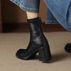 Nové dámské platformové kožené boty na vysokém podpatku jednobarevné nadměrné rytířské boty zadní zip podzim a zima kožené čtvercové a střední boty