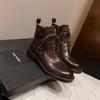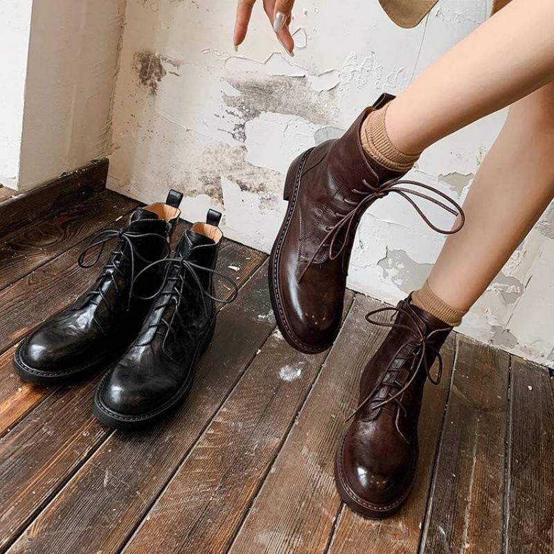 Autumn and winter women's leather boots leather large size medium boots lace-up versatile medium heel round head thick-soled sheepskin Martin boo