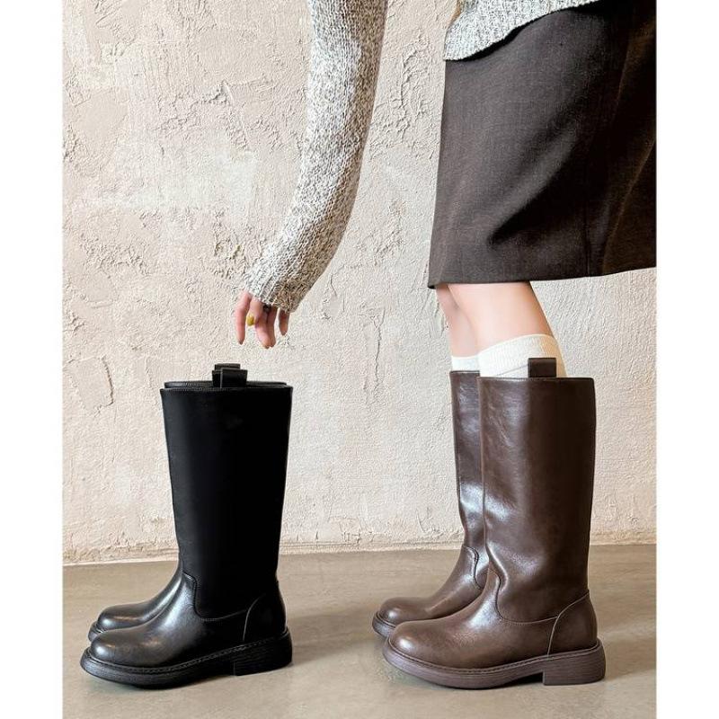Autumn and winter cowhide Martin boots solid color thick-soled non-slip medium heel large tube circumference women's boots new large size le