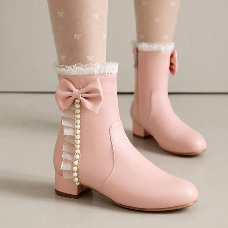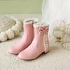 Autumn and winter girls Martin boots pink princess shoes side zipper medium and older children's shoes new Lolita children's low boots women