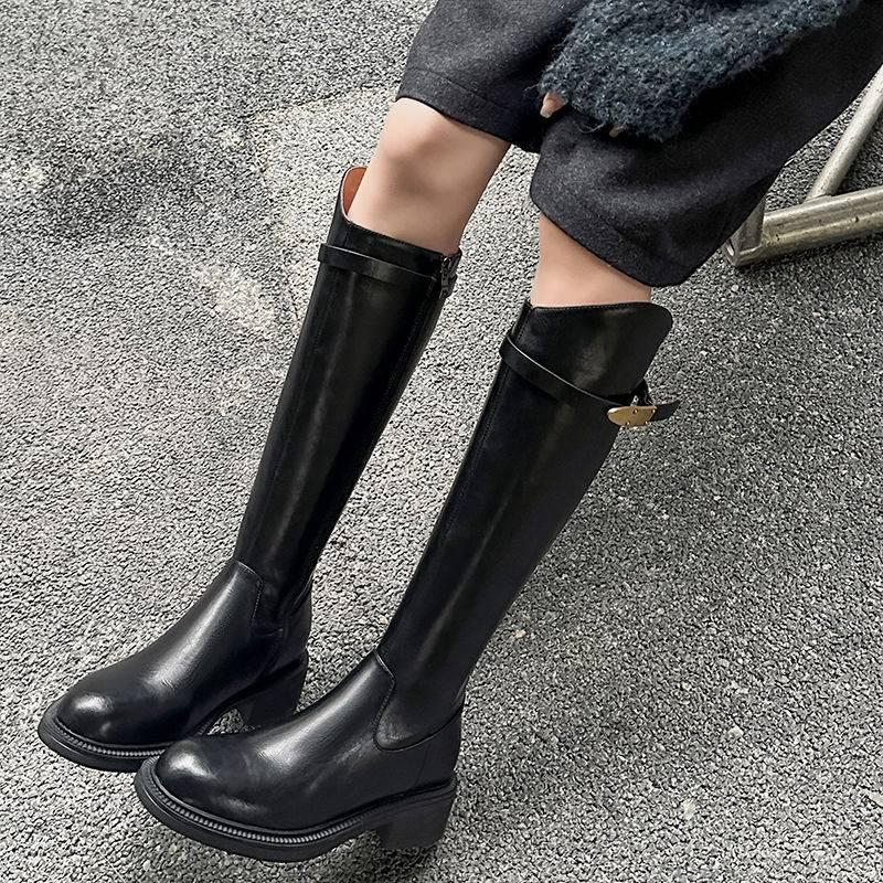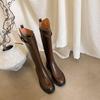 Autumn and winter platform knight boots women's medium heel round head versatile leather high boots new rubber sole large size women's boots
