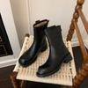 Autumn and winter versatile leather large size women's boots solid color medium heel round head new cowhide knight boots new medium boots women