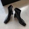 Autumn and winter women's leather large size women's boots square head rear zipper versatile low boots new cowhide thick heel fashion boots