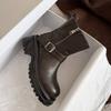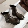 New leather black Martin boots side zipper thick-soled non-slip low boots versatile medium heel round head large size Martin boots