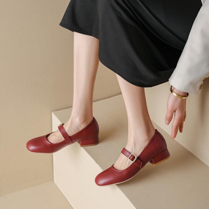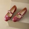Four seasons wear women's casual single shoes low heels women's single shoes solid color leather shoes round head new large size shoes rubber soft sol