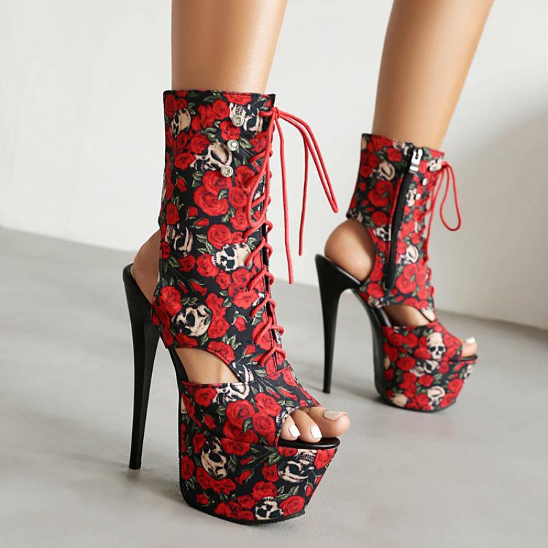 Foreign trade large size nightclub style super high heel sandals sexy lace-up waterproof table women's shoes waterproof table thick heel catwalk w