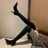 New European and American women's over-the-knee boots, black high-heeled round-headed thick-heeled autumn and winter women's leather boots,