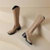 Autumn and winter women's leather Martin boots solid color comfortable platform high heels new square head rubber sole high boots women
