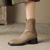Korean version of comfortable square head leather boots medium heel back zipper solid color medium boots rear zipper autumn and winter square heel M