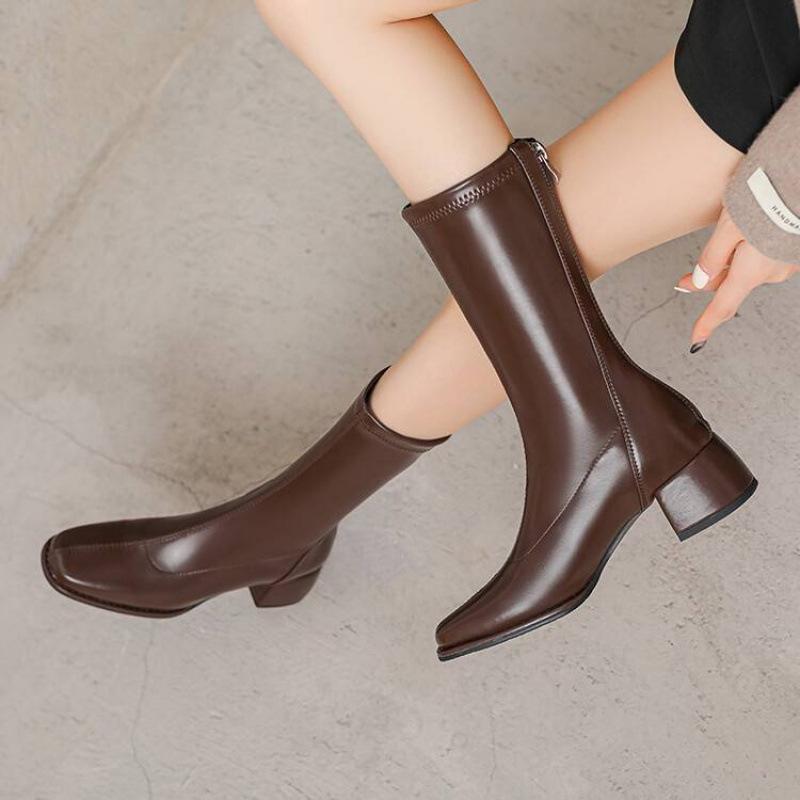 Korean version of comfortable low-heeled Martin boots women's solid color large size women's boots rear zipper square head autumn and winter s