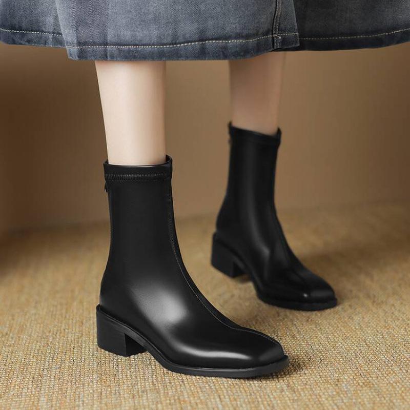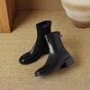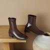 Korean version leather women's boots medium heel large size square head rear zipper knight boots women's autumn and winter solid color square