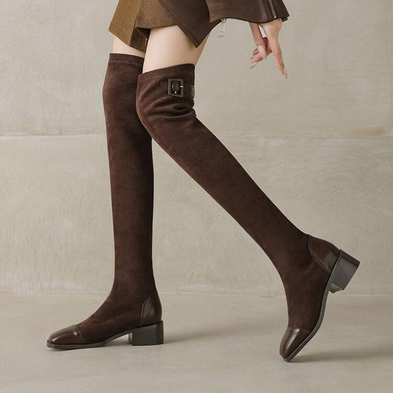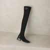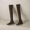 Autumn and Winter Sleeve Suede Over Knee Boots Women's Medium Heel Large Size Women's Boots Comfortable Elastic Rubber Sole Square Heel Bl