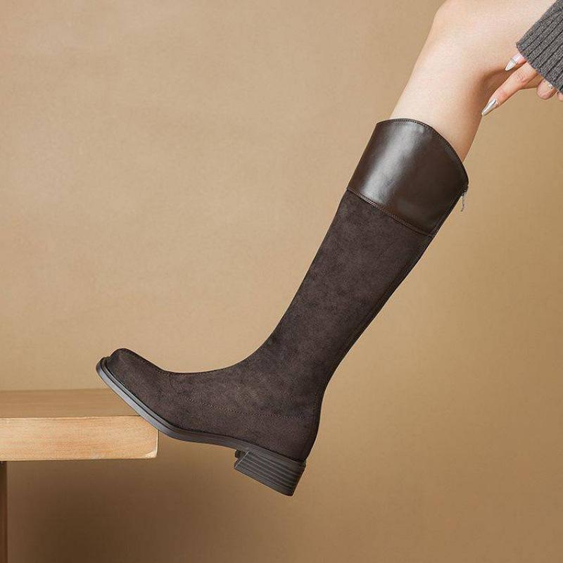 Autumn and Winter Suede Tall Boots Solid Color Large Size Women's Boots Medium Heel Back Zipper Fashion Boots Square Heel Comfortable Square Head