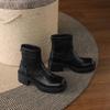 Autumn and winter solid color medium heel large size Martin boots rear zipper comfortable thick sole non-slip square heel leather boots Korean versio