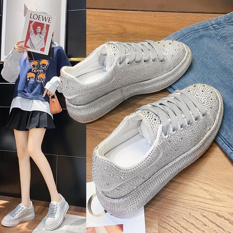NEW Brand Women Fashion Casual Glitter Sparkling Sneakers Women Encrusted Lace Up Shoes White Sole Fashion Street Sneakers Shiny